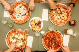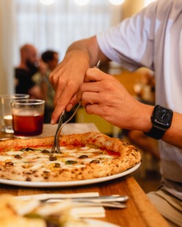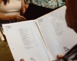Cosmic Pizza! Hier gibt’s Pizza im neapolitanischen Stil, dazu Vorspeisen, Desserts, Wein und Drinks – in angeregter Atmosphäre bei gemütlichem Licht und lebhafter Musik.